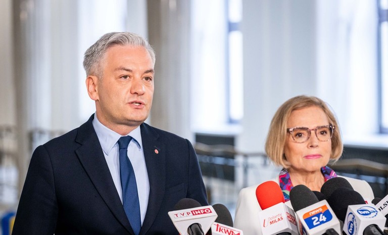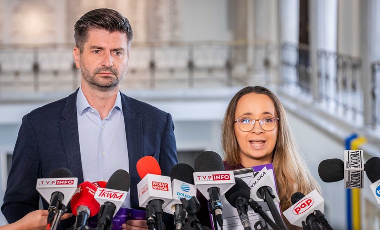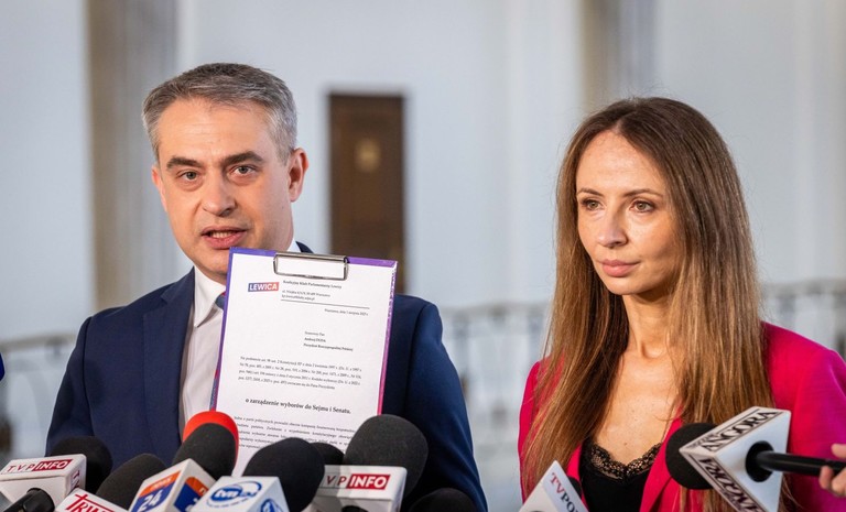 - Zwracamy się z wnioskiem do prezydenta Andrzeja Dudy o pilne zarządzenie wyborów do Sejmu i Senatu – oświadczyli posłowie Agnieszka Dziemianowicz-Bąk i Krzysztof Gawkowski podczas konferencji ...